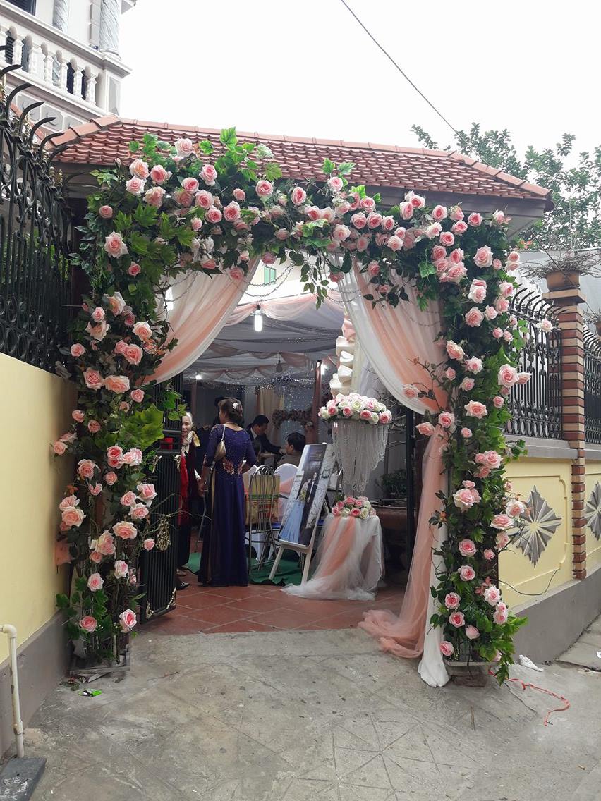 Chi phí nhịp cầu thang: chỉ 50k/ nhịp. Tưởng chừng với giá tiền đó có thể mua hoa về tự cắm nhưng số lượng mua được không nhiều và màu sắc khi lên ảnh không đẹp bằng hoa lụa đâu nhé.